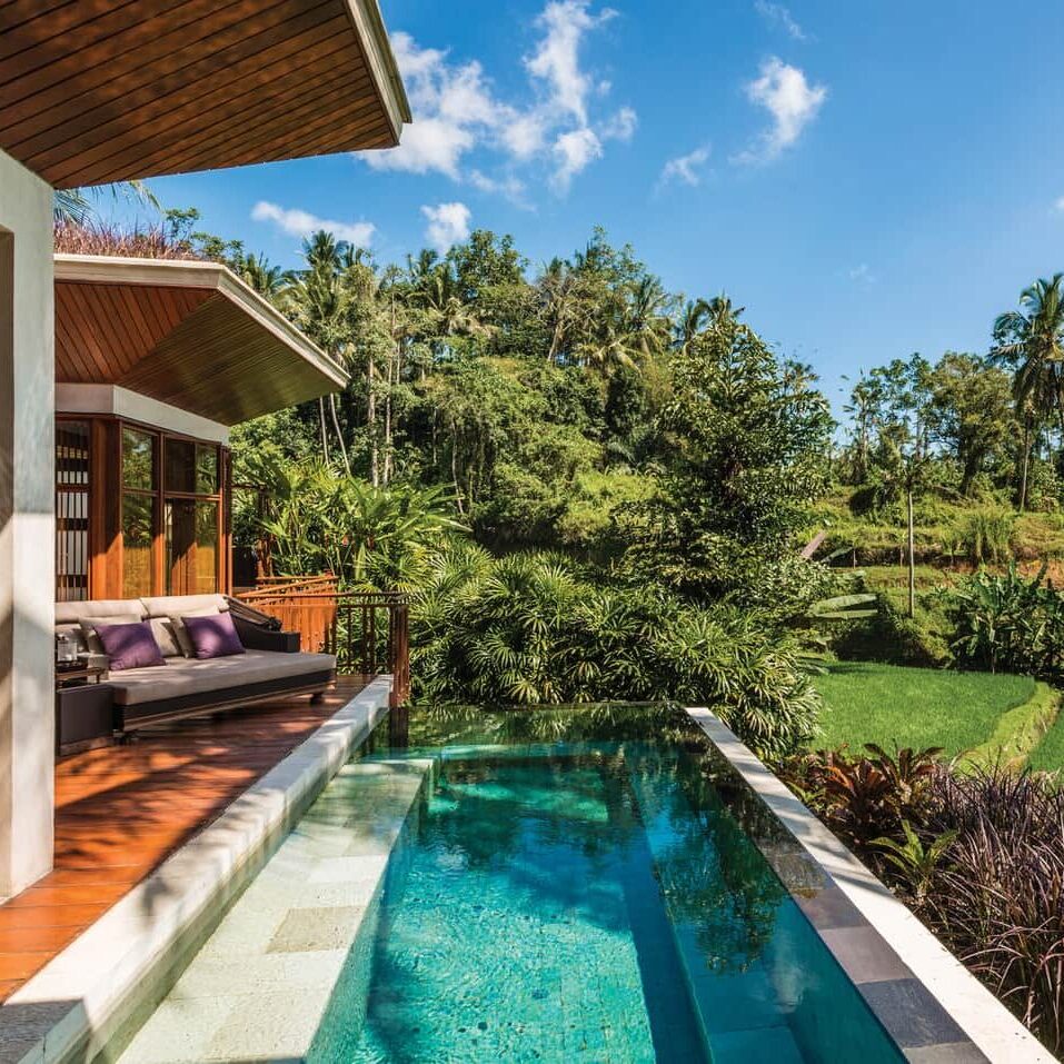 Nestled in the lush Ayung River valley, Four Seasons Resort Bali at Sayan offers a serene jungle retreat where nature, culture, and refined luxury intertwine. Suspended above the treetops, its iconic rooftop lotus pond leads into suites and villas with calming river or garden views and warm, nature-inspired design. Reconnect yourself through ancient healing rituals, immersive wellness journeys, and intimate cultural experiences that honor Bali’s spiritual heritage, creating a sanctuary of tranquility at the heart of Ubud.
